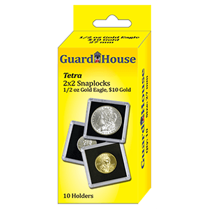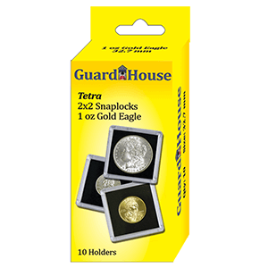 Guardhouse Tetra coin holders are a great storage solution for your individual coins. Our plastic 2x2 snap-lock cases contain a black EVA foam interior to hold your coin in place and provide a great background to let your coin shine against. These 2x2 coin holders are made from sturdy acrylic plastic and include 10 holders per package.